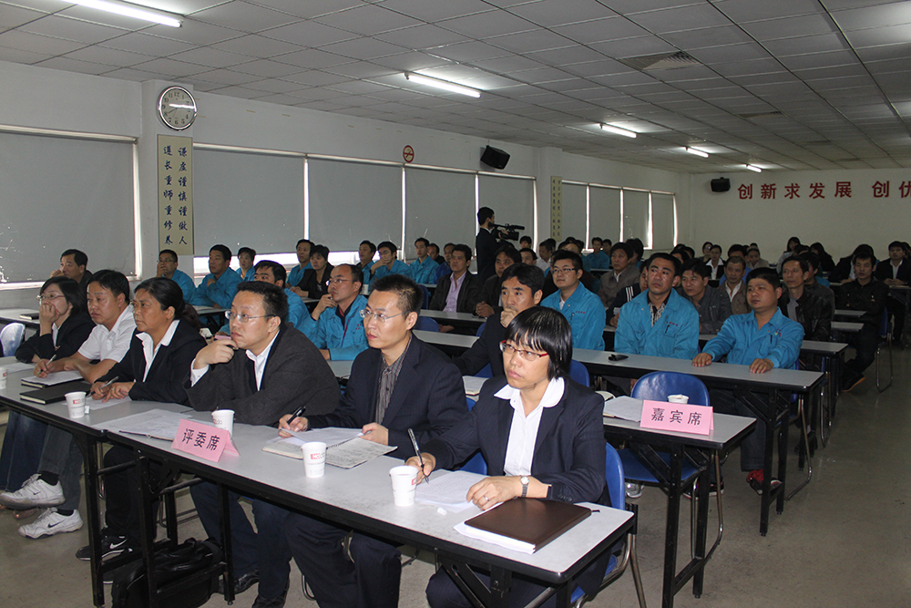 會(huì)議共分為現(xiàn)場(chǎng)案例展示、改善效果分析、評(píng)委現(xiàn)場(chǎng)提問(wèn)等三大環(huán)節(jié),選手們將車(chē)間改善事例用PPT的形式展現(xiàn)出來(lái),圖文并茂的為現(xiàn)場(chǎng)觀眾進(jìn)行講解,并對(duì)車(chē)間改善效果進(jìn)行詳細(xì)的闡述,與在場(chǎng)的班組代表們形成互動(dòng)式交流。隨后評(píng)委對(duì)于改善效果進(jìn)行現(xiàn)場(chǎng)評(píng)分,經(jīng)過(guò)一番激烈的角逐,來(lái)自全鋼C區(qū)的王明波以《改進(jìn)升降平移式硫化機(jī)開(kāi)模過(guò)程》的案例獲得了此次例會(huì)的特等獎(jiǎng),并以總分37.2的高分位列第一。來(lái)自小胎廠的黃海峰以及全鋼B區(qū)車(chē)間的朱恒海分獲第二、第三名。通用公司副總經(jīng)理顧亞紅對(duì)于此次例會(huì)給予了高度的肯定,并對(duì)改善案例中涌現(xiàn)的優(yōu)秀員工給予了一定的獎(jiǎng)勵(lì),感謝他們?yōu)檐?chē)間生產(chǎn)所作出的貢獻(xiàn),并希望各廠區(qū)在今后的工作中能保持這種勇于創(chuàng)新、勇于改進(jìn)的意識(shí),認(rèn)真的完成每一項(xiàng)生產(chǎn)任務(wù),為通用的騰飛再點(diǎn)輝煌。